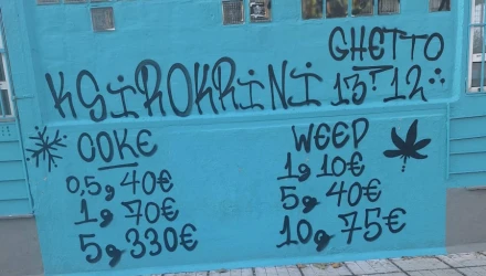 Σύμφωνα με το ρεπορτάζ του parallaximag.gr, το εν λόγω γκράφιτι έχει «φιλοτεχνηθεί» στο προαύλιο του Πρότυπου Εκκλησιαστικού Γυμνασίου και Λυκείου Νεάπολης, με το σχέδιο να περιλαμβάνει τις τιμές ανά γραμμάριο για κοκαΐνη και ινδική κάνναβη. Οι υπογράφοντες του σχεδίου αυτοαποκαλούνται ghetto ksirokrini και, σύμφωνα με την καταγγελία γονιών και εκπδευτικών, είναι γνωστοί στην περιοχή για τη δράση τους.