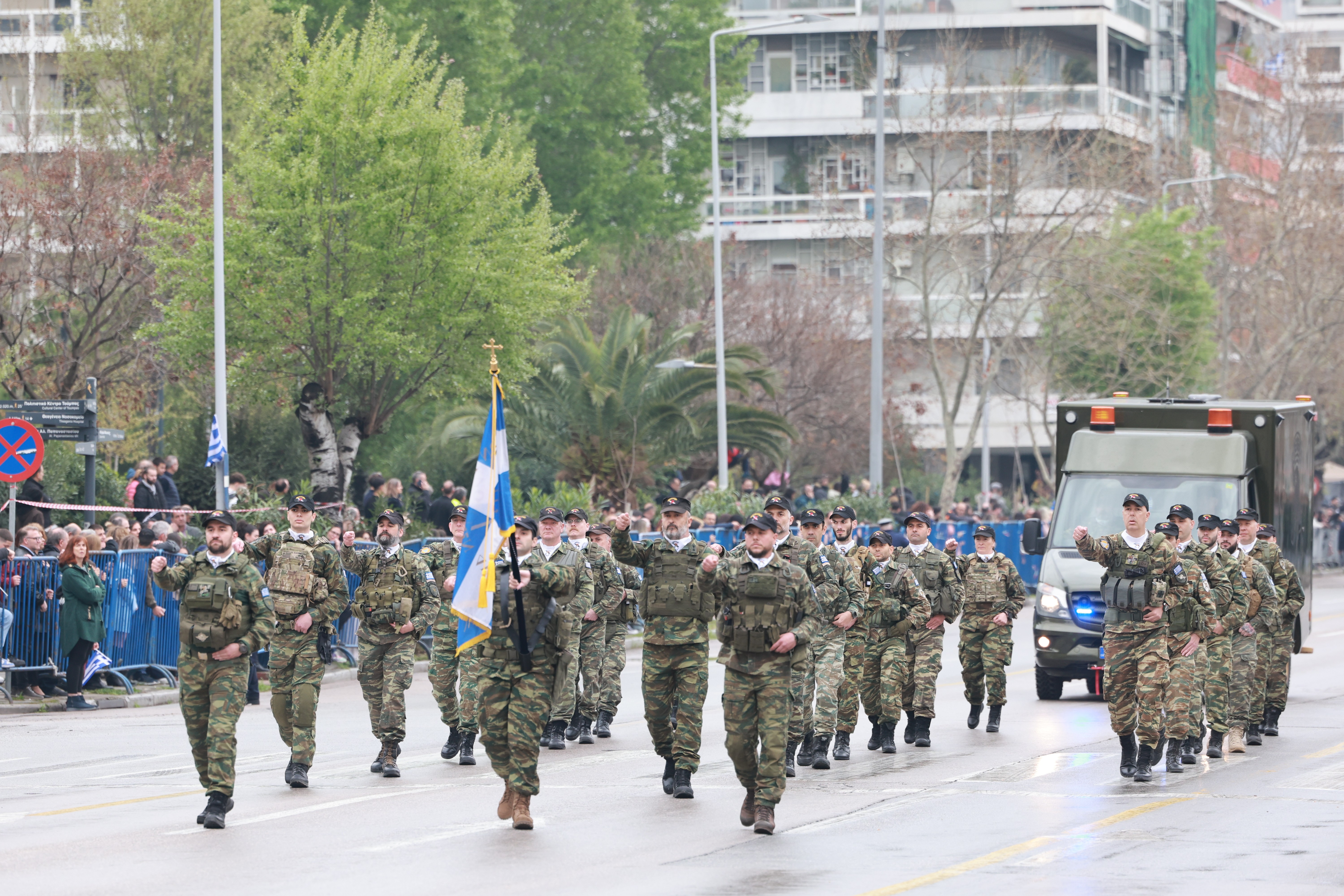 Το ψιλόβροχο δεν ήταν αποτρεπτικό, ούτε η πυκνή συννεφιά, για να βρεθούν χιλιάδες πολίτες της Θεσσαλονίκης στην παρέλαση της 25ης