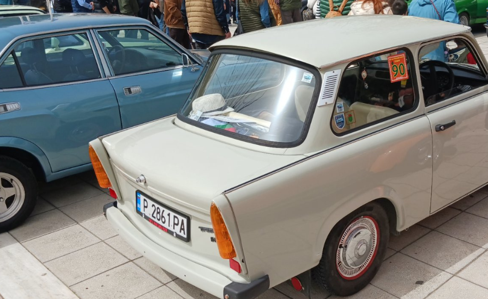 Mercedes, BMW, Opel, Alfa Romeo ήταν μεταξύ των μοντέλων που παρατάχθηκαν αλλά αυτά που έκλεψαν την παράσταση, το καθένα για διαφορετικούς λόγους, ήταν ένα Trabant κατασκευασμένο στην πρώην Ανατολική Γερμανία και ένα εκπληκτικό Corvette Comet κόκκινο.