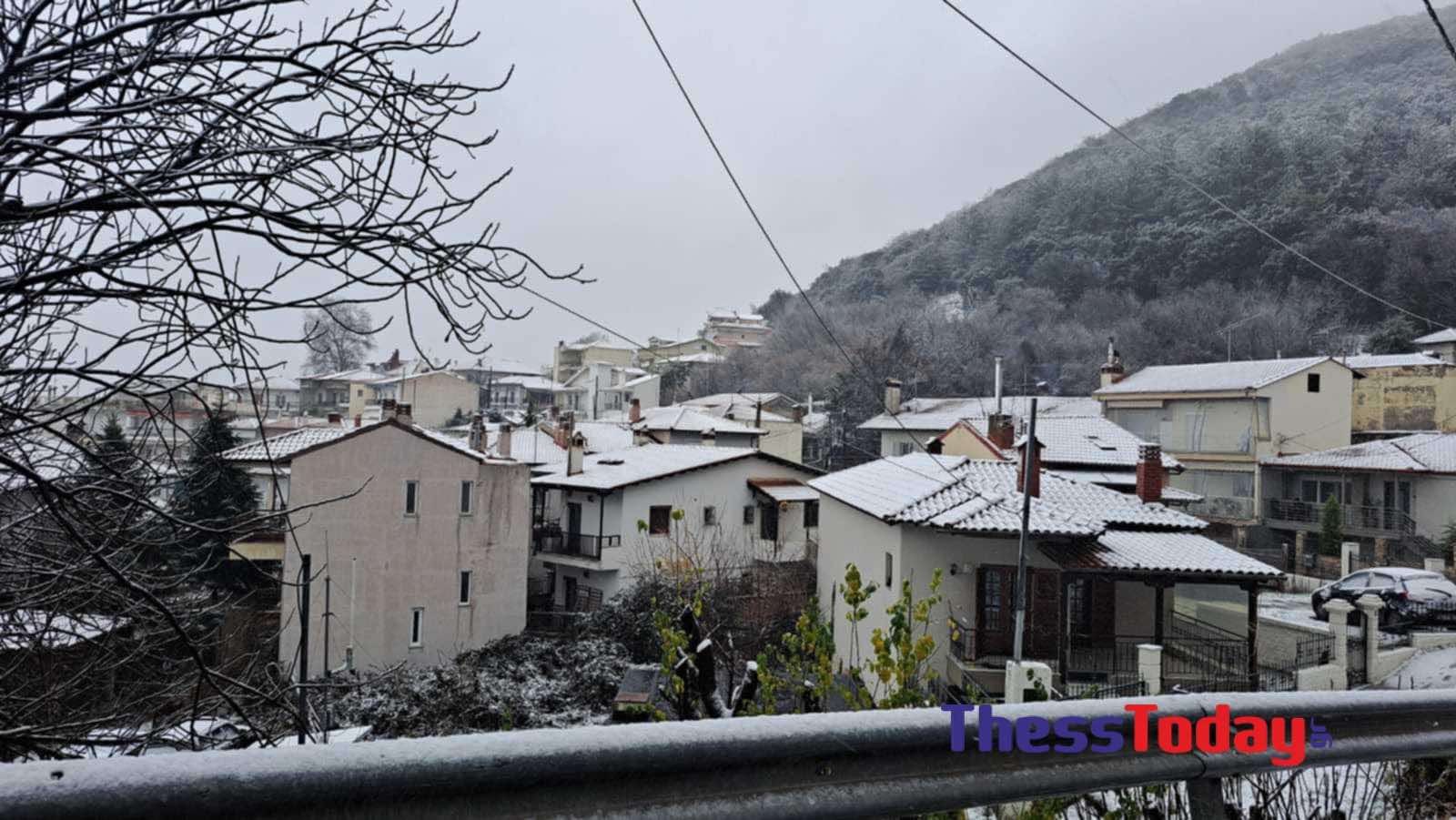 Στα λευκά «ντύθηκε» από το πρωί του Σαββάτου η περιοχή του Χορτιάτη, στη Θεσσαλονίκη.