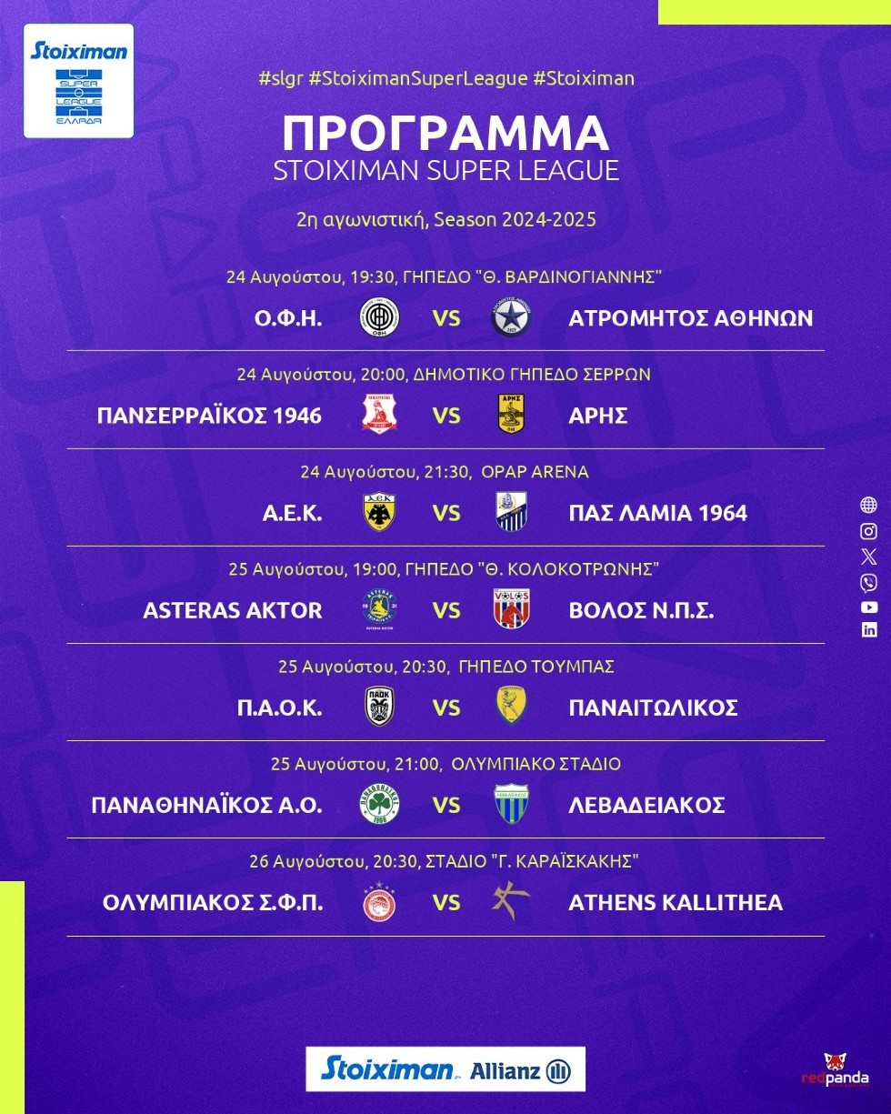 Το αναλυτικό πρόγραμμα της 2ης αγωνιστικής της Stoiximan Super League