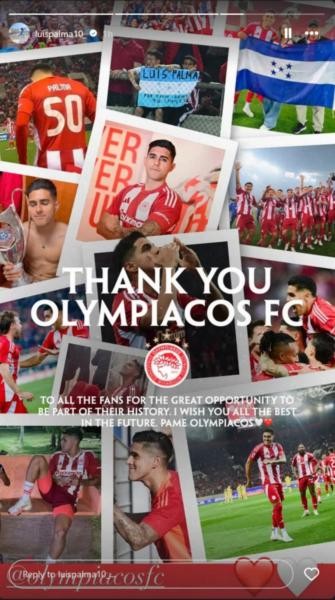 Το «αντίο» του Λουίς Πάλμα στον Ολυμπιακό: «Ευχαριστώ για τη μεγάλη ευκαιρία»