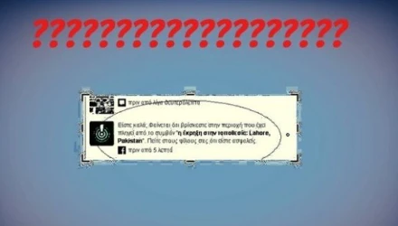 Με τη διαφορά ότι την Κυριακή πάρα πολλοί έλληνες είδαν έκπληκτοι στο λογαριασμό τους στο Facebook την ειδοποίηση: "Είστε καλά; Φαίνεται ότι βρίσκεστε στην περιοχή που έχει πληγεί από το συμβάν 'η έκρηξη στην τοποθεσία Lahore, Pakistan'. Πείτε στους φίλους σας ότι είστε ασφαλείς".