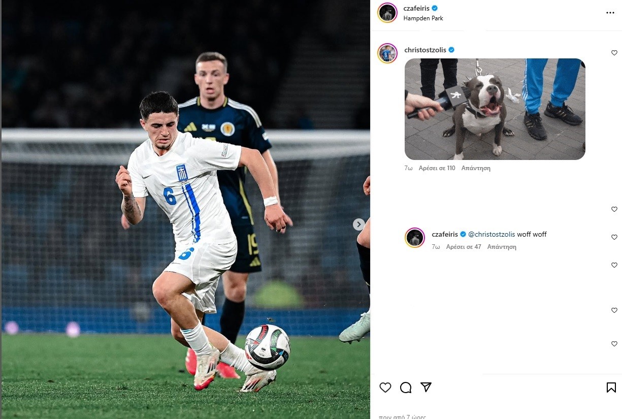 - Η ανάρτηση του Καρέτσα μετά το πρώτο του γκολ με την Εθνική Ελλάδος