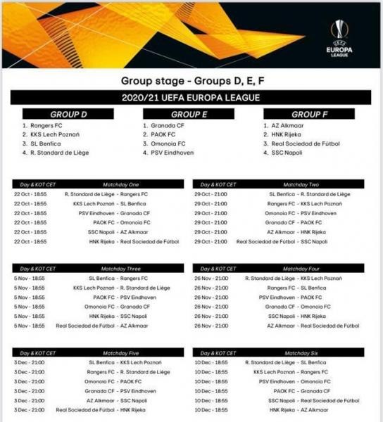 Στην δεύτερη αγωνιστική που θα διεξαχθεί στις 29 Οκτωβρίου, θα αντιμετωπίσει την Γρανάδα στην Ισπανία στις 22:00, ενώ την τρίτη αγωνιστική στις 5 Νοεμβρίου, θα φιλοξενήσει στην Τούμπα την Αϊντχόφεν στις 19:55.